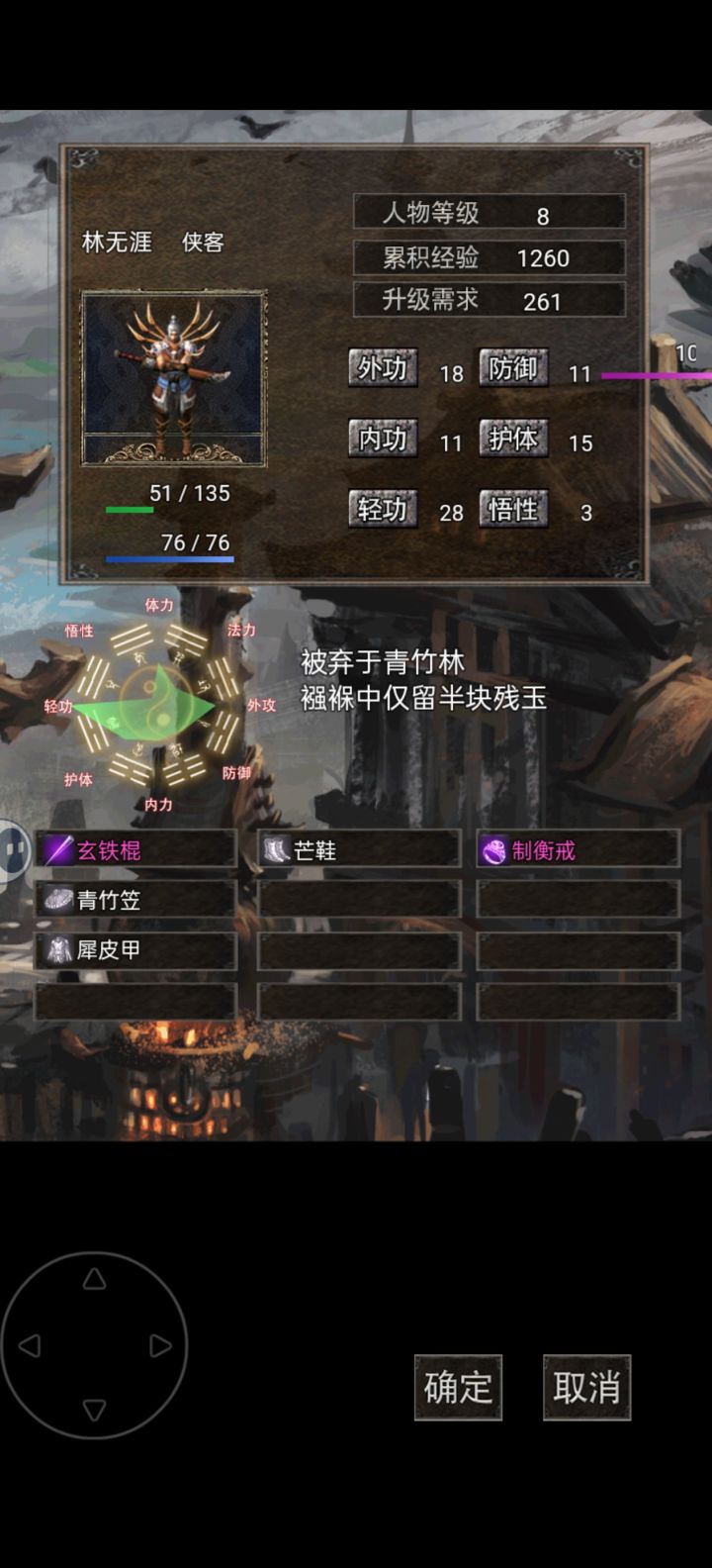 开局- 选项选择:开局全选第一个选项主攻击;全选第二个选项开启阵法主防御吸血;全选第三个主轻功(出手速度)。- 刷龙血:开局刷免费三连抽龙血,没刷到就重开,然后去换独孤云。- 开宝箱:把左上角两个宝箱开了,再兑换群公告里的兑换码。- 挂树:去青竹林东上面挂三小时树,大概可得6个宝石,一个宝石能增加三点攻击,还能拿称号,也可提前做渡船任务。队友招募- 独孤云:新手村左上角对话,需10块紫