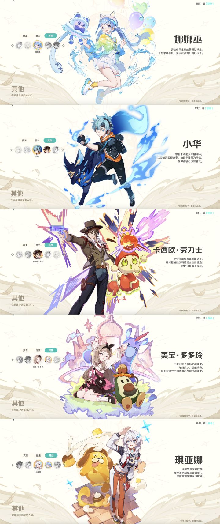 《崩坏:因缘精灵》公布了官网,有大量因缘精灵和因缘师公开。其中,因缘精灵有「元理」、「特性」之分,也有「身高」、「能量」数据;因缘师则分为「真王」、「僭主」、「其他」三种。 《崩坏:因缘精灵》PC及iOS平台「结缘测试」也开启了测试招募,截止到9月12日 23:59,前往TapTap或游戏官网填写问卷即可报名。测试开始时间尚未公布。本次为不计费删档封闭测试,仅对已满18周岁用户开放。#