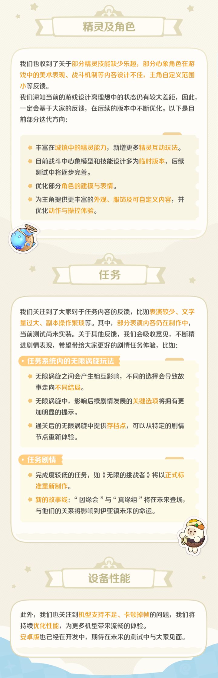 亲爱的玩家,感谢您关注或参与《崩坏:因缘精灵》的首次公开测试。基于测试反馈,制作组明确了一些优化方向,快来看看吧!