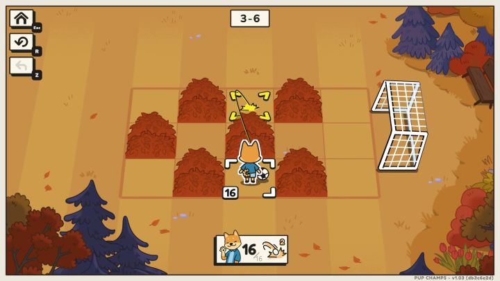 关卡内的机关障碍也有不少,有会让球消失的草丛,有会让球黏住的泥潭还有阻截传球路径的地鼠,到后面关卡还会有模仿你的移动的猴子等等,但是玩家的最终目标是需要将球射进球门里。看似简单的"传球-射门"基础规则,竟能衍生出百变解法,Tips:小狗不能主动调整射球身位,需要通过移动/接球来调整控球方向。最妙的是那些"障碍变助攻"的瞬间,当玩家灵光一闪用泥潭卡敌人位然后抓住时机进球时,简直能脑补出屏幕外小狗们的欢呼。