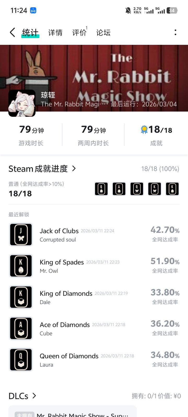 这款游戏中文名字叫兔子先生的魔术秀,这款游戏给我的感觉就是解密难度太高了,解密大部分是无厘头。这款游戏是steam免费游戏,还是算比较良心的给个四星感觉不过分。前面14关都比较无聊,14关以后才开始剧情,目前还没有通关,也做了视频喜欢的小伙伴可以来试试。