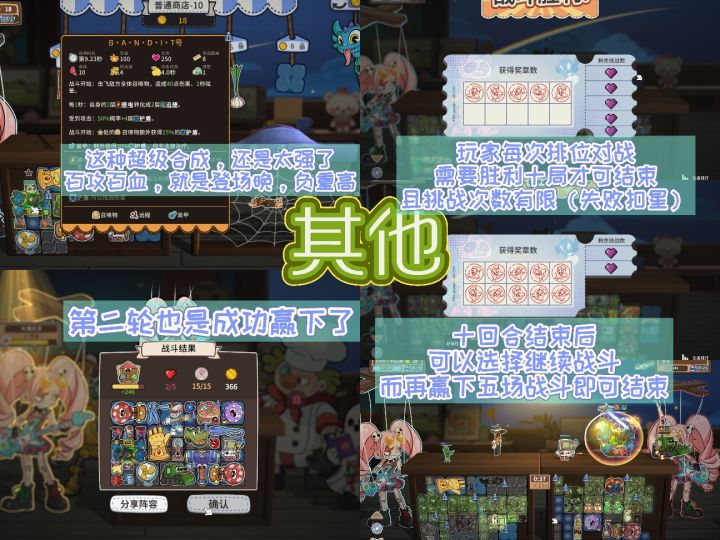 虽然本作在玩法上与背包乱斗相似,但我觉得在体验感上玩具屋更胜一筹,不同于背包乱斗的ppt播片,玩具屋有完整的战旗战斗和动画,在战斗的体验感上更加完整,你可以观看玩具召唤物实时战斗,可爱万岁。