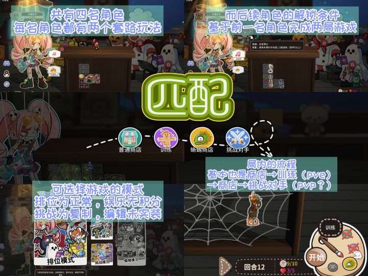 游戏目前提供四个英雄,每个英雄还有两种职业分支,同时还有超过400+玩具供玩家选择各具特色的能力为玩家提供了不同的帮助效果。局内的对局主要分为战斗和商店两种类型,其中有的商店能选择指定类型的道具刷新。