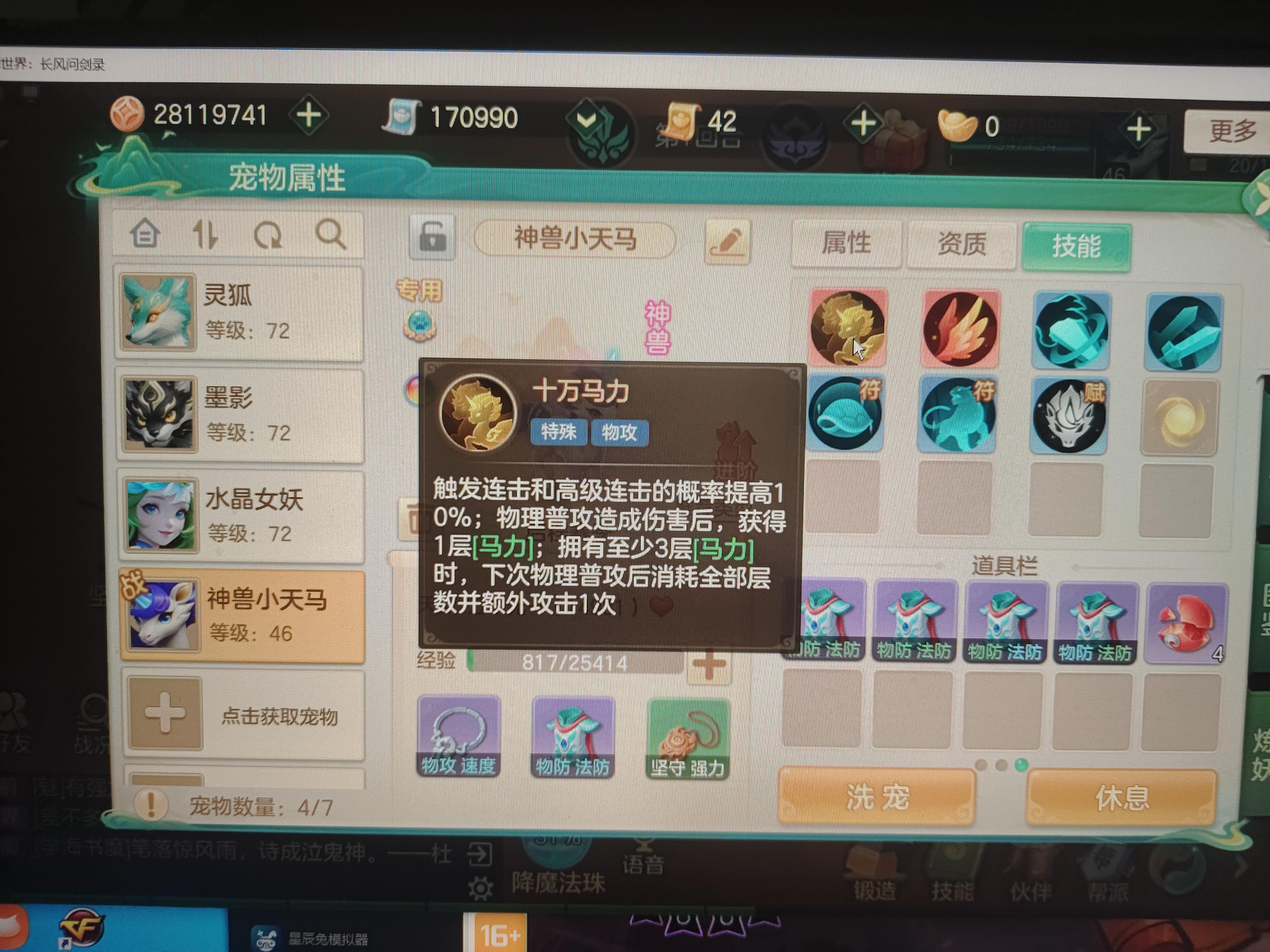 大佬们,我今天刚领的小马,是打成连击宠还是剑气宠,感觉他的技能十万马力好浪费格子啊