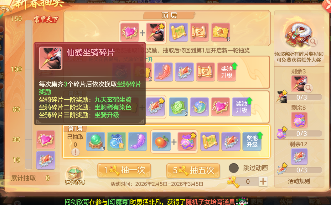 新坐骑有人抽了吗,要多少钱?