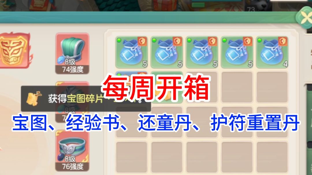 【每周开箱】一个宝图,三个护符重置丹,四本经验书,五个彩云沙