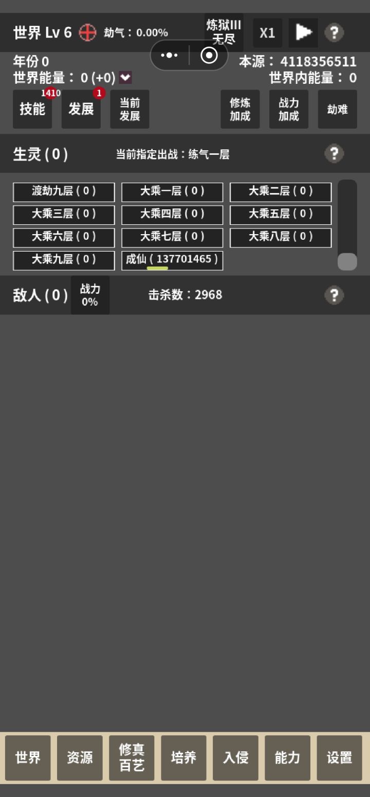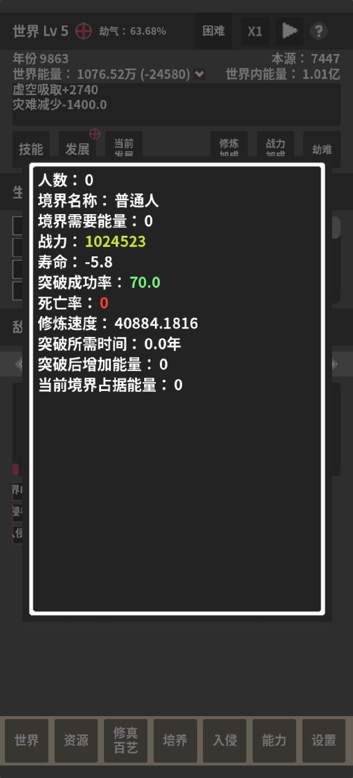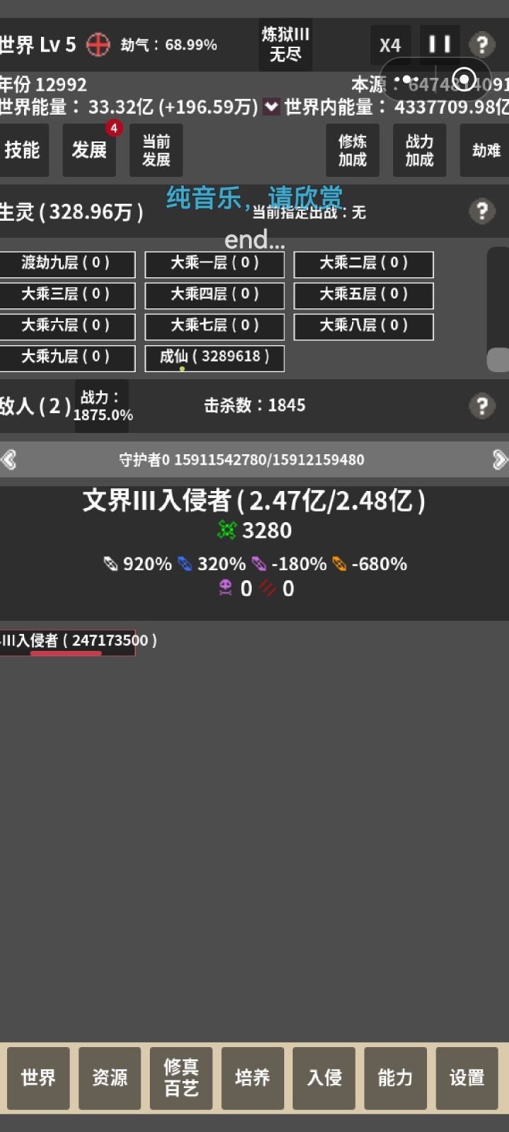 后期bug太多了,到后面人全死了变成鬼修不说还会莫名其妙的死,700多亿世界能量直接暴毙