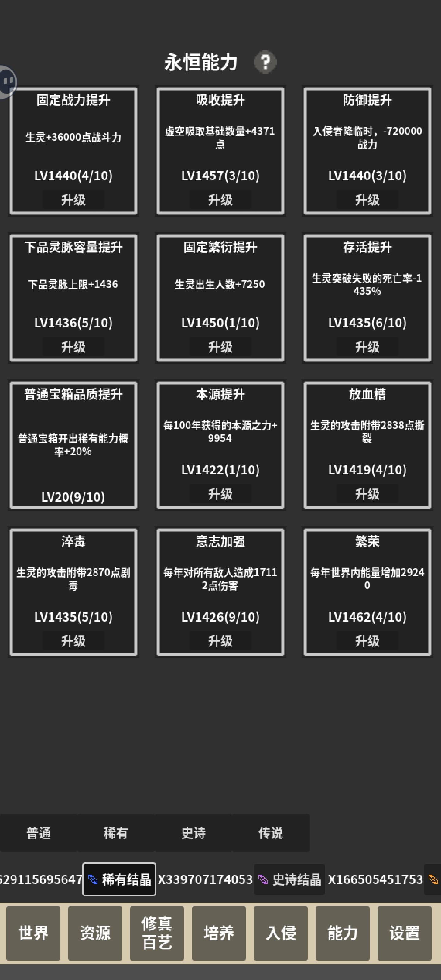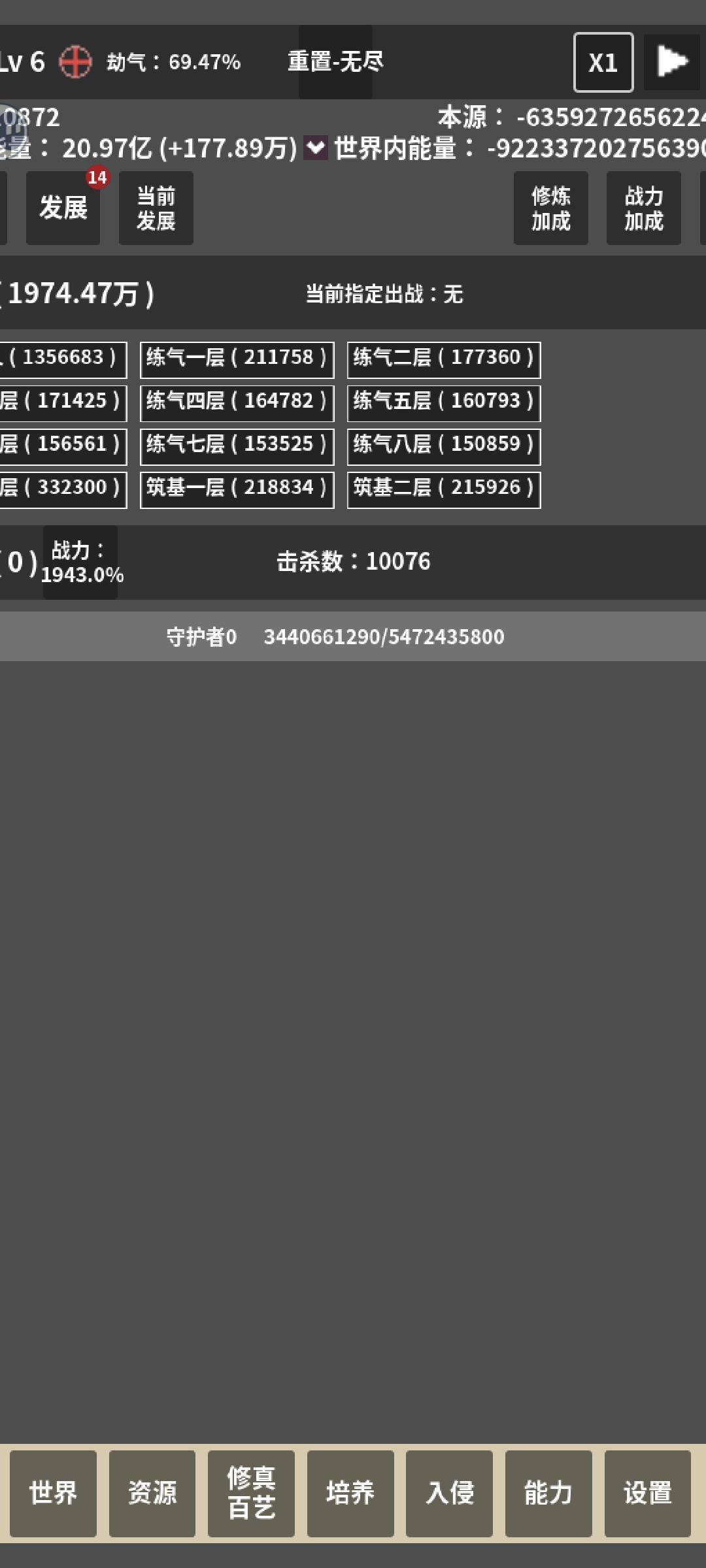 我敢打赌绝对没有比这更优的战略了 1.首先你开局必须有>300+100*n个发展点数(n=开局出生人口/6000) 2.进游戏把发展倍率调到百倍,暂停游戏(一定要在人口只有100的时候就点击暂停)然后点击发展,如果刷到“世界屏障改Ⅱ”就点击,否则就退出游戏重新进入存档,再次点击发展,一直重复3次 (注:点击发展之前一定要暂停,要不然之前的发展无法保留,重新进入存档后,需要在时间流逝前就点击暂
