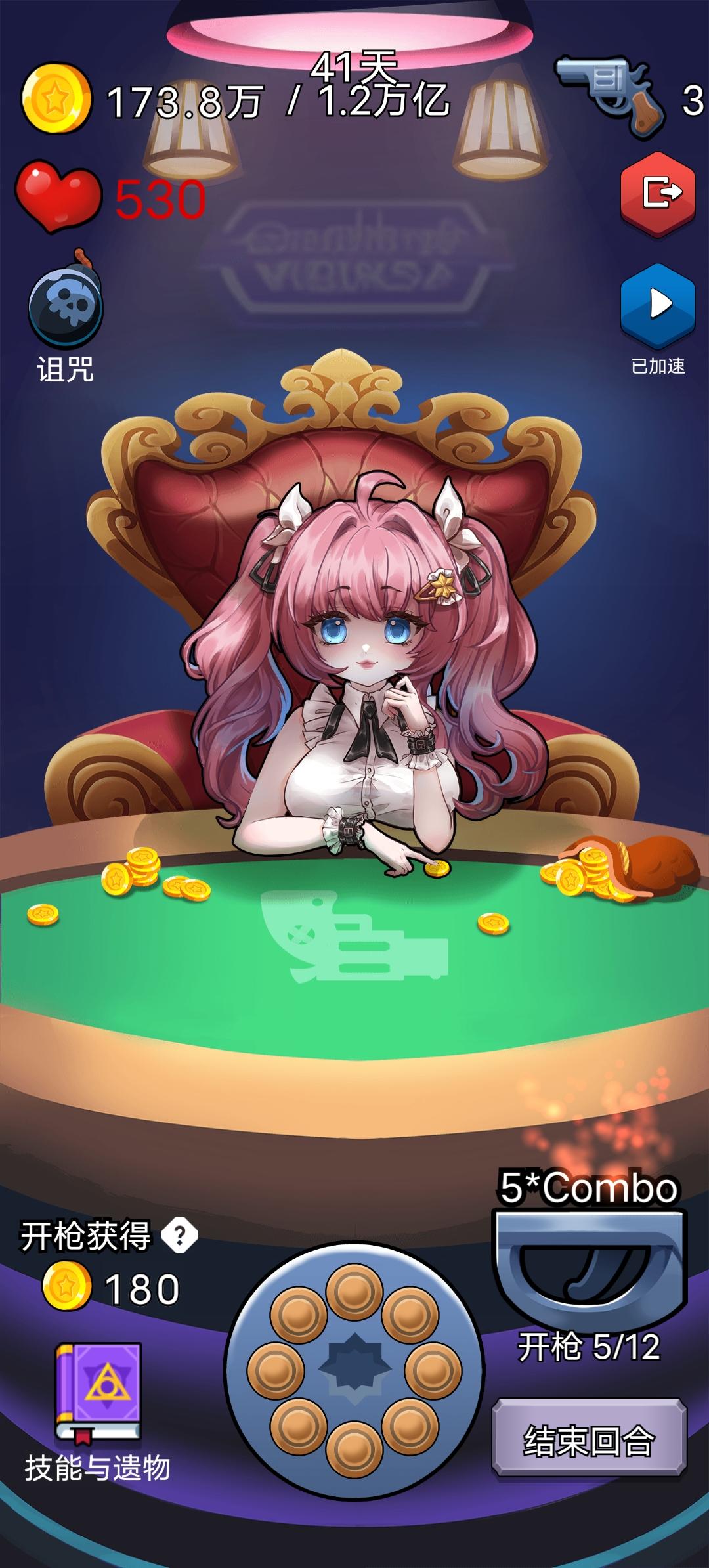 游戏不长,前期建议装一颗子弹,优选免伤和受击回血,等受伤和回血抵消就是无敌了,后期就是装满子弹。 第一二枪射出后就可以选择技能,怕老是按到广告就看这句话就明白了,如果不小心按到广告想退出,那个x是随机出现在屏幕上下左右角落的