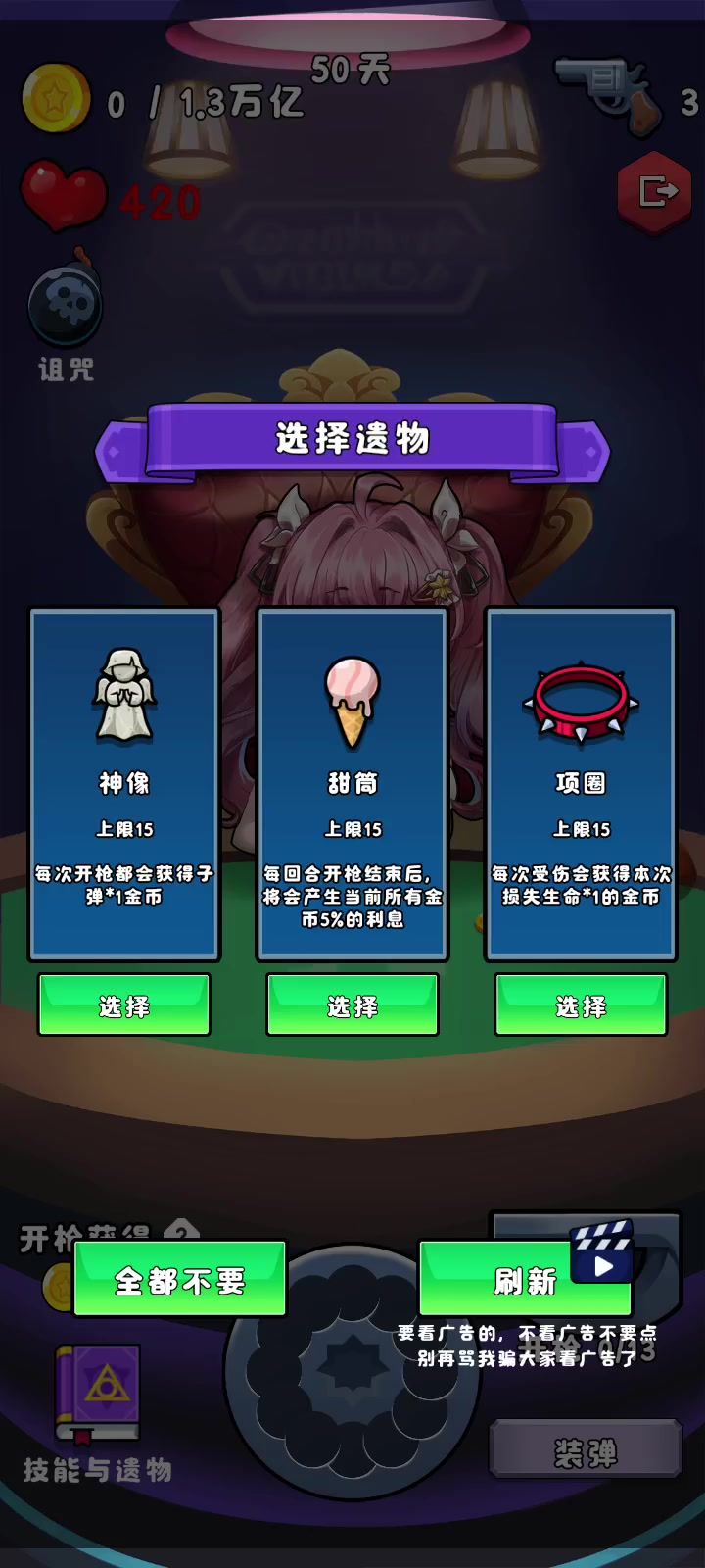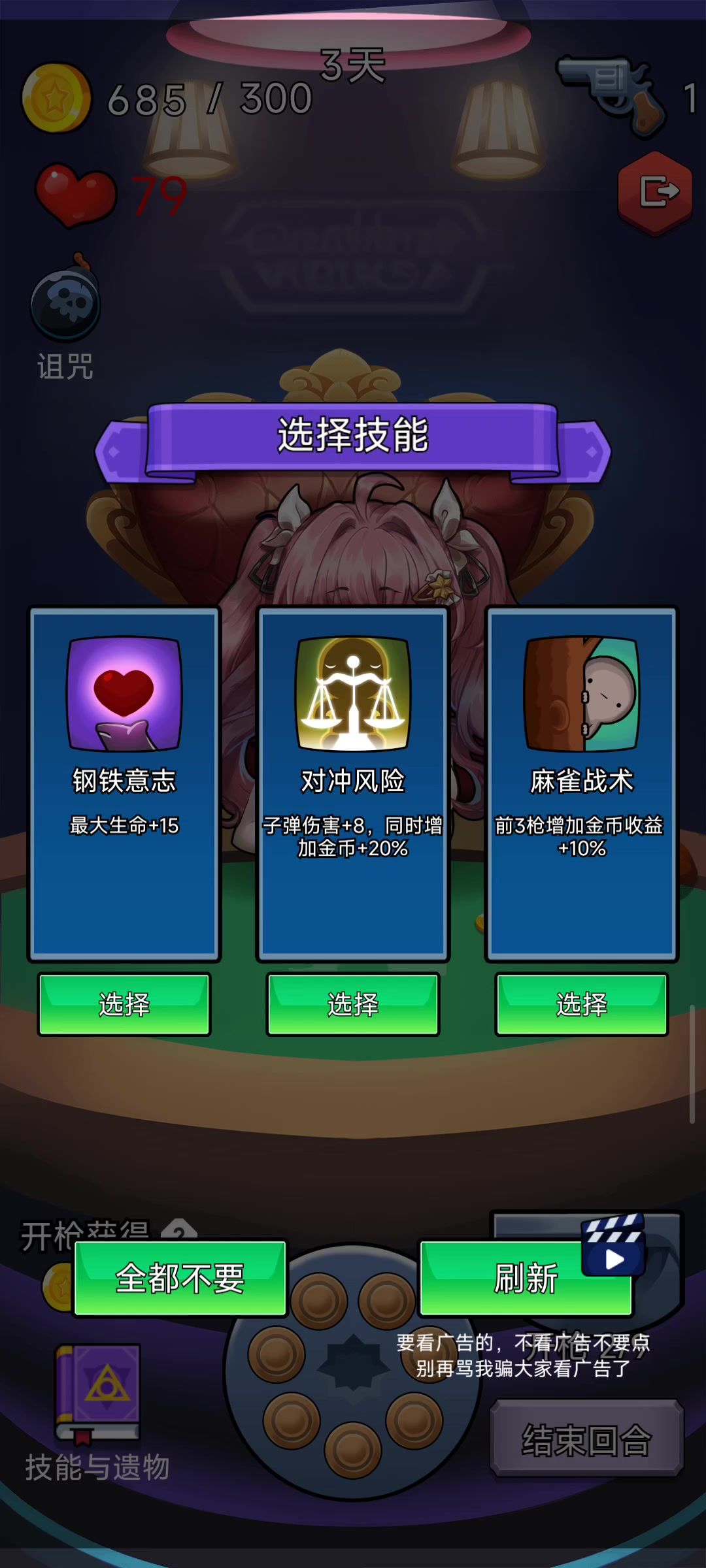 感觉已经不是在和子弹博弈了,而是在和看广告刷新奖励博弈(奖励增益随机弹出,看广告刷新奖励和开火键重叠)