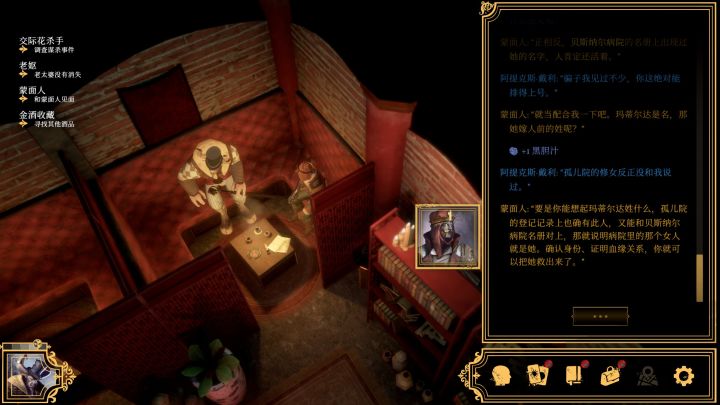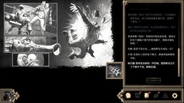 其中我感觉最为惊喜的就是游戏的多主角设定,玩家可以扮演牛头人阿提克斯,交际花女郎克拉拉,矮人机械师泰迪和他的小机器人奥托。其中牛头人和克拉拉是男女主,无论是主线和支线的剧情都最为完整,而且探案方面两人也是互相辅助作证。矮人泰迪和奥托出场稍微少一些,剧情上多为补充说明,不过奥托的一些互动也蛮有趣的。