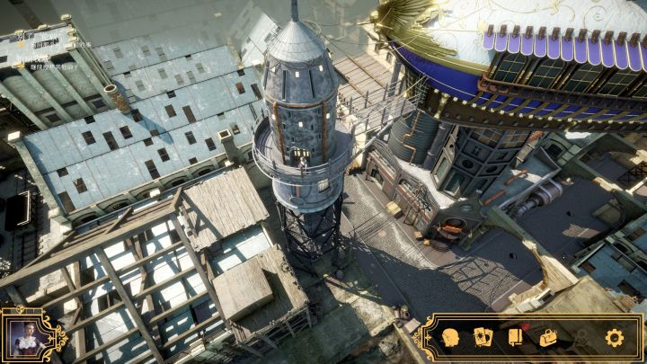 游戏一开始就将玩家的注意力转移到画面上去,老旧街道阴暗的下水道与昏暗的天气想匹配,意识中另一个絮絮叨叨的声音也让这醉酒后被赶出来的牛头人陷入朦胧的状态,在这时引出连环杀人案、孤儿失踪案与牛头人生母之谜让玩家的兴致充分被调动起来。而进入第二章,克拉拉走出来那一刻,豪华的空中飞艇、广阔的城市广场,明媚的大好天气,仿佛与昨天牛头人经历的那一切是有着天壤之别。两个毫不相干的人恰巧因为案件相遇,这个过程中与不同NPC的聊天和互动,会体会到一些不同阶级、不同身份、不同种族的人之间的思辨。这正是游戏的精巧之处。等到最后知道真相的矛盾和纠结也会水到渠成,让人内心思绪翻涌。