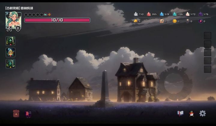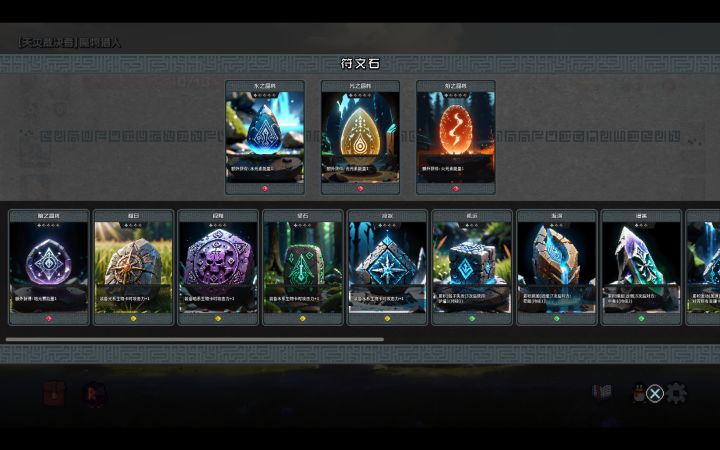 左下角的标有R字的石头:佩戴、更换符文石,最多带3个,(打完一阶地下城和二阶地下城回到村子的时候可以进行更换符文石)