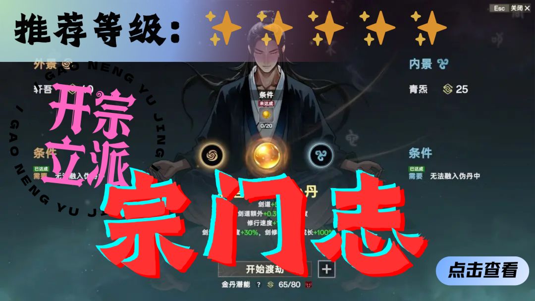 修仙之路,历经十二境,从凡人之躯蜕变为道祖,每一步都至关重要。初入修仙者需历经练气境、筑基境、结丹境、元婴境,直至入神境——这是修仙世界观下最基础的核心逻辑,无数的优秀修仙作品都遵从着这样的设定。《宗门志》作为一款4X风格的修仙游戏,其终局游戏的方式之一就是完成这个凡人修仙的旅程——相当于《文明》中的飞天胜利。对于大多数玩家来说,这种胜利方式比较“自闭”,并不需要过多的和外在势力(AI)进行