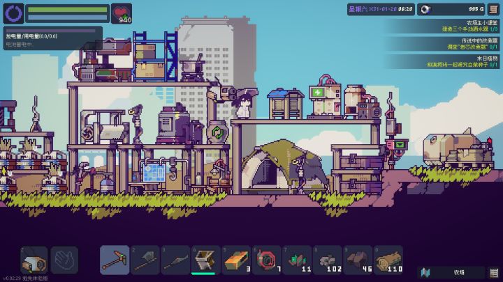 游戏的生存机制也不太一样,玩家需要通过挖取垃圾获取空瓶制作饮用水(一组20瓶,每瓶恢复10点体力),并利用天气系统规划种植周期。酸雨会直接摧毁白菜等高价作物,必须通过制作薄膜覆盖或移至室内种植等等。