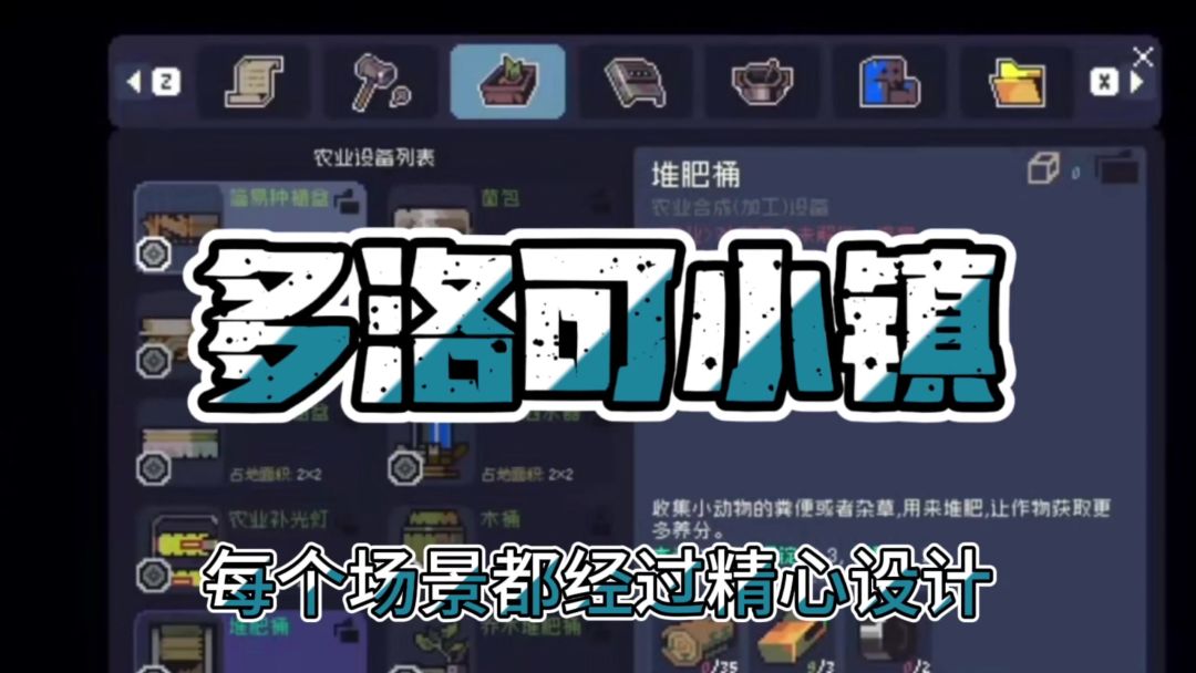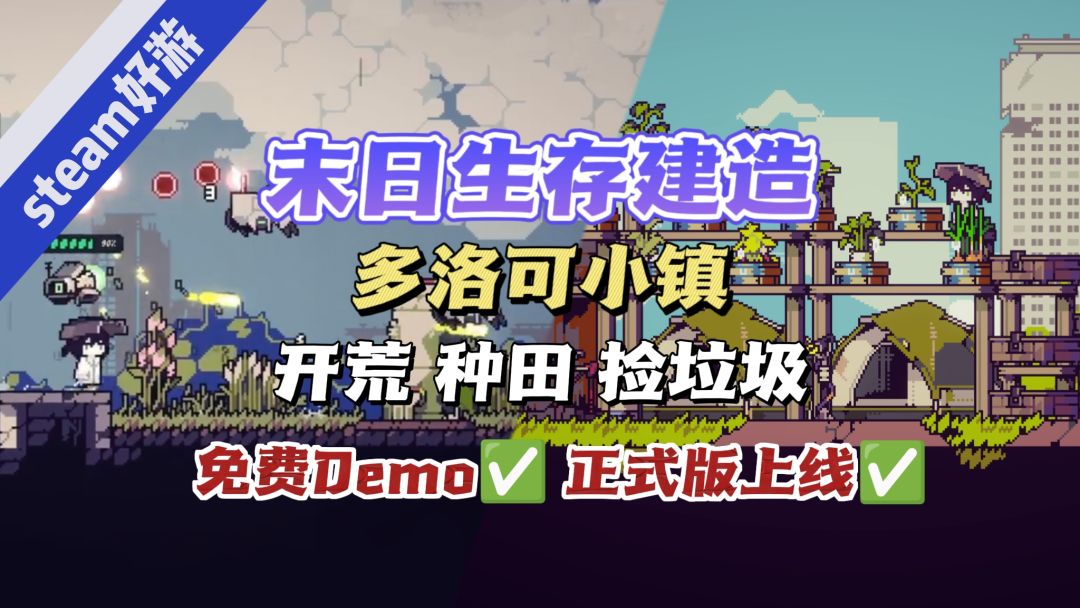 今天给大家安利一下多洛可小镇,超级好玩的一款国产末日废土种田游戏。游戏可以在steam游玩,国区原价48元,史低43.2元。像素画风超级养眼,音乐好听。引导清晰,玩起来轻松休闲。种地,钓鱼,挖矿,战斗规划农场,和小镇居民友好往来。可以随时在床上和长椅上存档的操作也非常友好。#pc游戏安利局 #多洛可小镇 #发现好游戏 #游戏日常 #浅评一下 #今天游戏圈发生了啥
