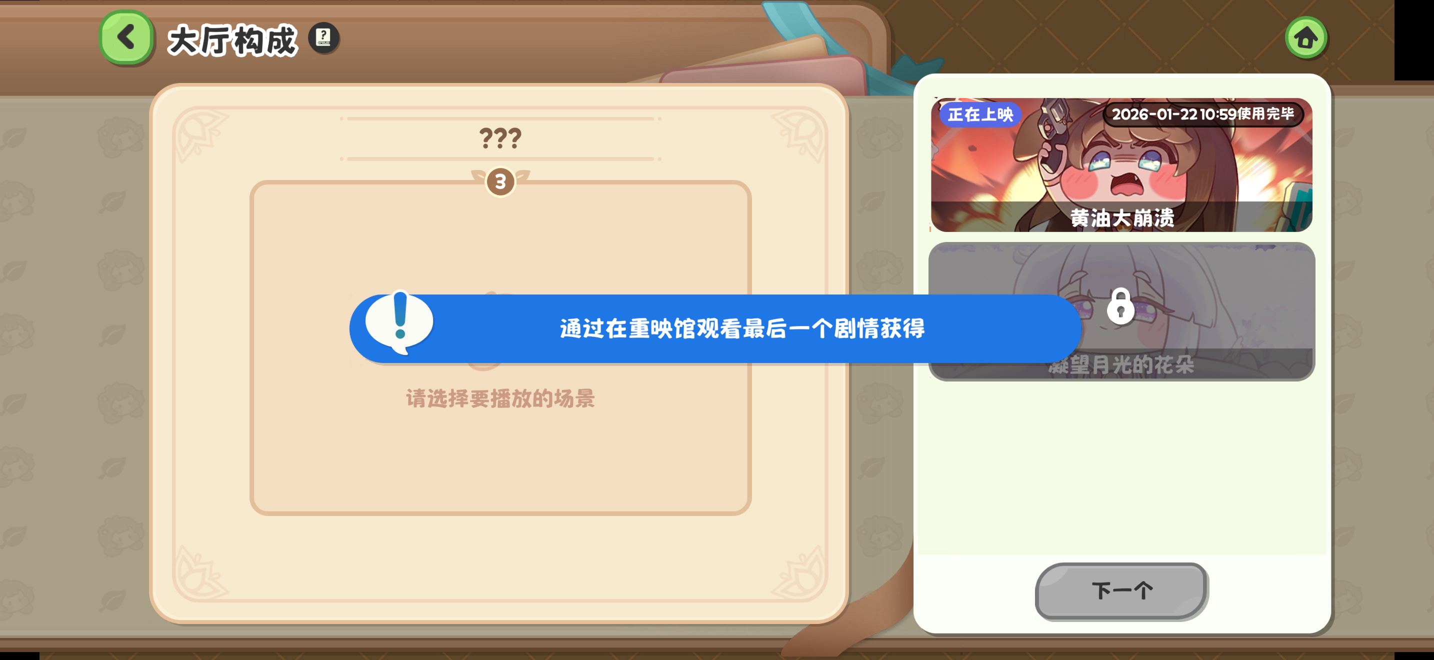 之前一直好端端的,今天突然用不了了 提示在重映馆看最后一个剧情,重映馆里没找到,我的优米!