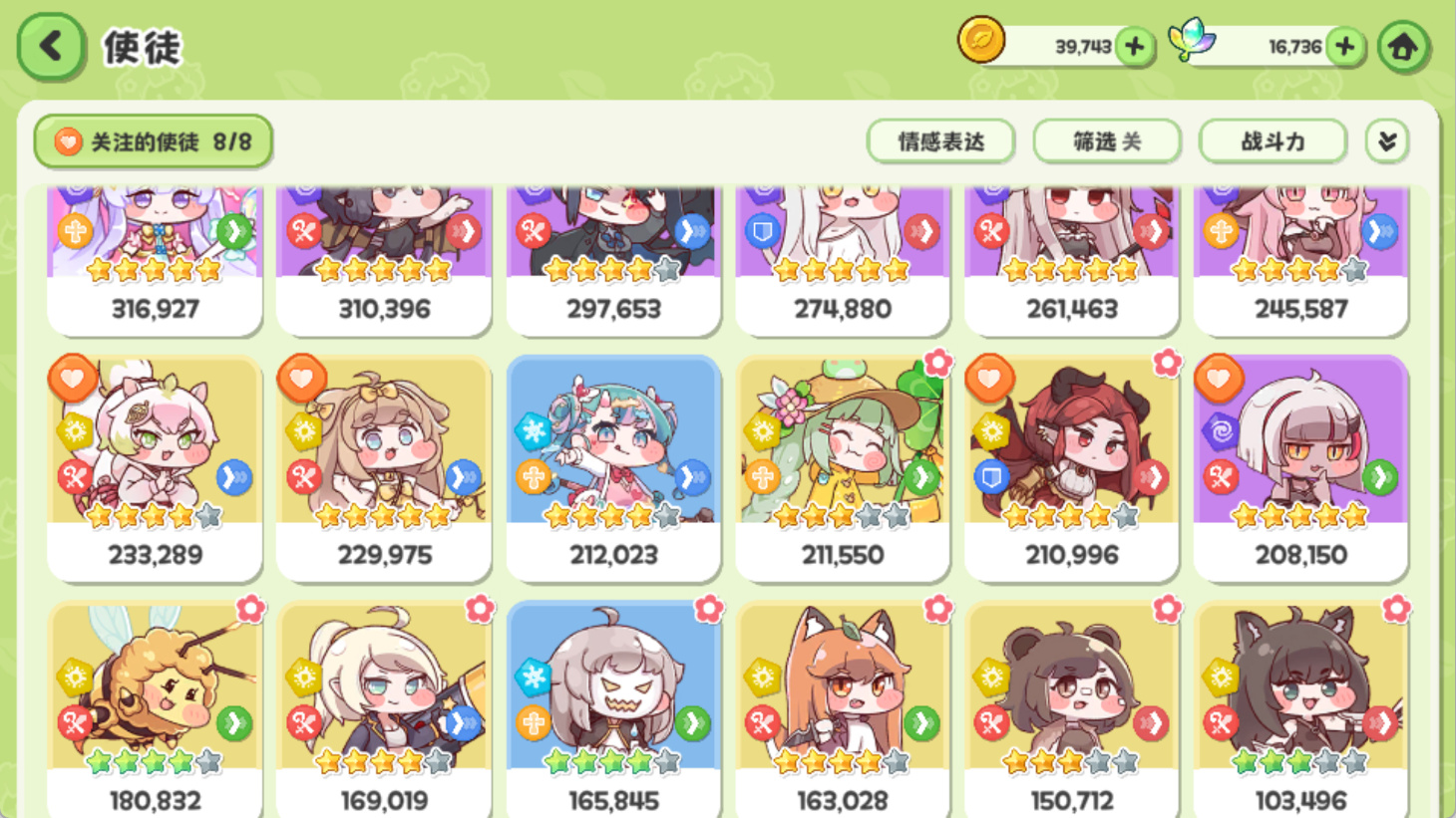 如题,亲密度13以下的那些使徒我都喂了大概半个月,也就是15次左右。食物提供的基础亲密度如下:白10点、绿20点、蓝30点、紫40点。使徒对食物的喜好修正值为50%,以白色为例:喜欢吃的提供10×150%=15点亲密度,不喜欢吃的提供10×50%=5点亲密度。总结下来就是:白:5/10/15绿:10/20/30蓝:15/30/45紫:60。是的,所有使徒包括以后出的都喜欢紫色食物。