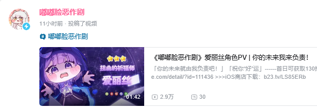 👀《嘟嘟脸恶作剧》新角色爱丽丝PV播出由上海蓝颢网络科技有限公司出版、上海幻电信息科技有限公司运营的二次元卡牌回合制手游《嘟嘟脸恶作剧》国服于近日发布了新角色“爱丽丝”的宣传PV。不过,这个新内容的传播效果似乎不太理想,在各个视频平台上的播放量和互动数据表现都比较平淡,未能激起太大的水花。目前来看爱丽丝的PV相关数据,不及此前获得官方庆祝的黄油PV👀新角色爱丽丝PV播放量未达预期玩家社区讨
