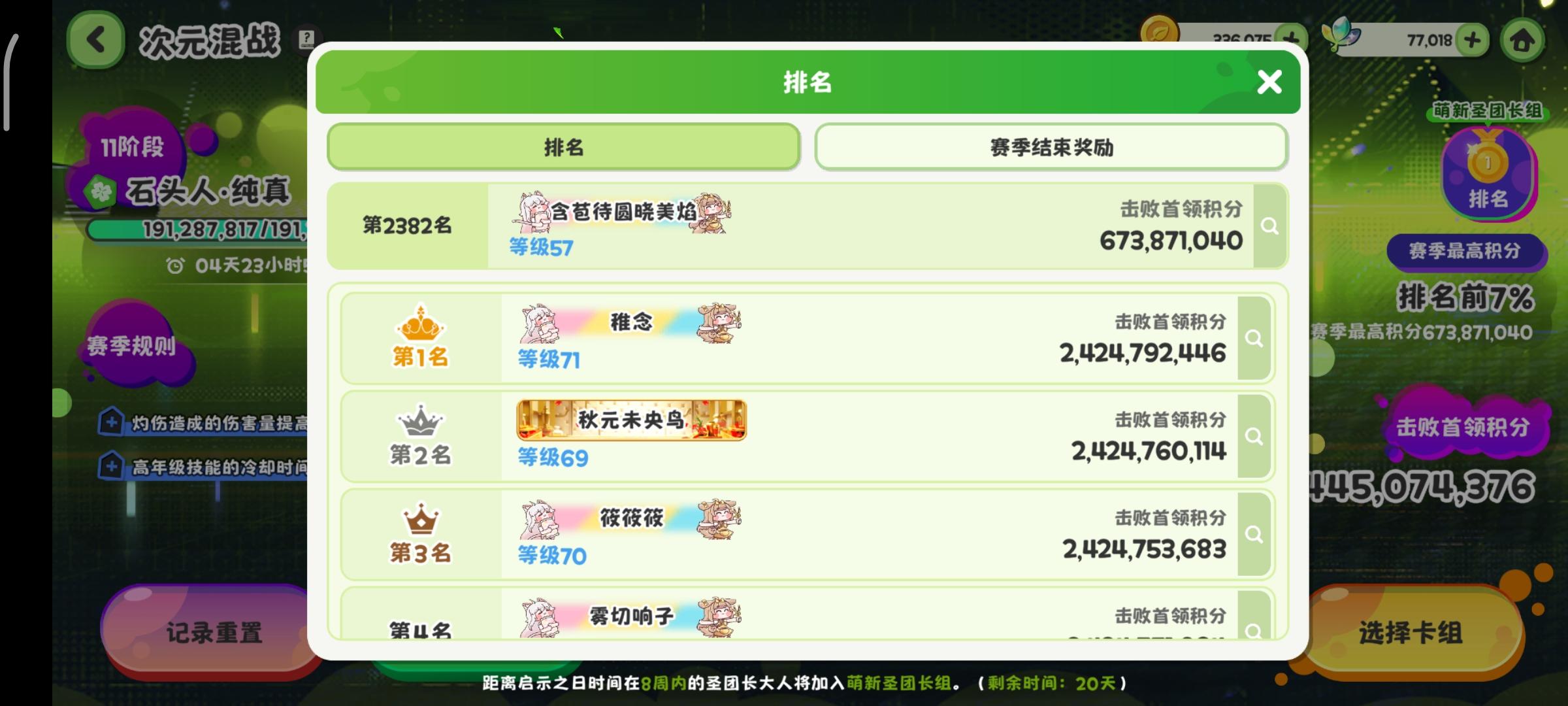 零氪也是玩了24天了,进度小结,目前中辣也打到了21章,次元还是老样子,先打到不好打的地方,然后提练度,最后一天打一刀,这次一档应该也是稳了。相比上次的唯一区别是,这次把11打过了,可能是黑龙练度高了一点,然后雨伊全程刷小技能,才勉强过吧。过12的话估计得用黑龙转向技巧才有可能一刀过,不过我这练度应该不可能,也没多余资源凑二队,还是再摸摸鱼,下次次元应该有机会。如果接下来一周,不像上周一样四天出一