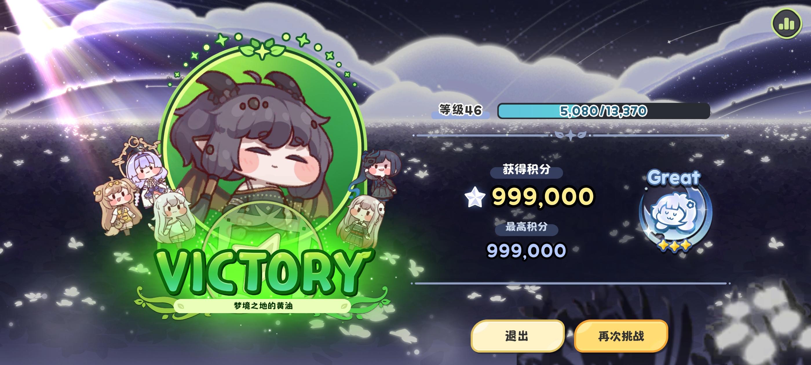 前言: 所有小怪、精英和boss攻击和血量提升了一些,buff提前给的很多。注解: 这一次就要选择活动推荐的buff,加上(祝福的回忆)注解: 以上配队需要当期UP(兽人黄油)一只来提升buff伤害! 前排选择(龙人鲁德)来顶住一大波前排的浣熊流浪者; 队友依旧(松鼠莫莫和蜜蜂茱蜜)的召唤术来分担上下两路的伤害; 辅助选择(艾达使徒优米和自然灵梅露娜)来增加一点全体buff和全