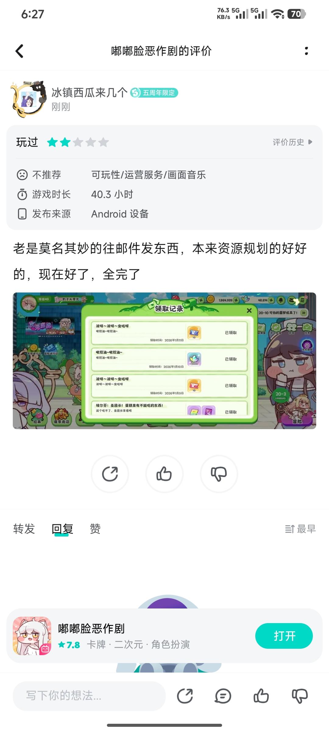 本来看前面的时候还没什么,我对汇率也不是很了解,所以定价我也没怎么看,但是每周一刷新免费1000买三星使徒,国服为什么没有