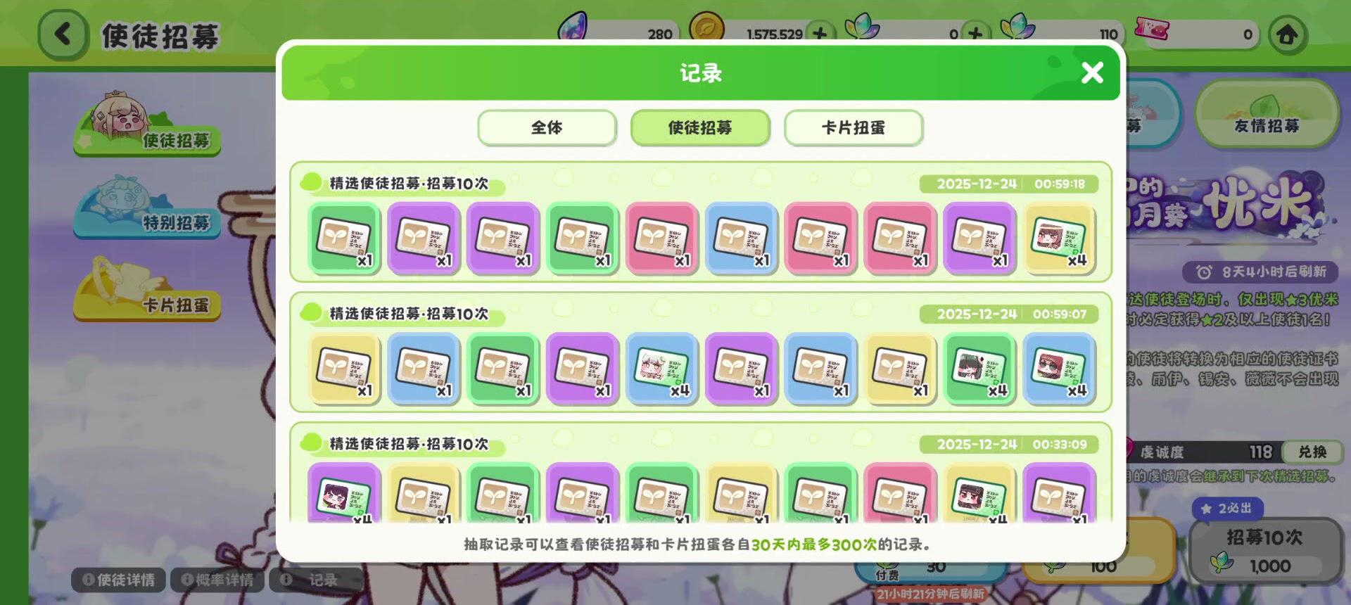 麻麻我要玩这个游戏一辈子[表情_星星眼]抽了其次优米卡池都没中,结果在送的随机1~3星使徒里除了优米[表情_比心][表情_比心][表情_比心]