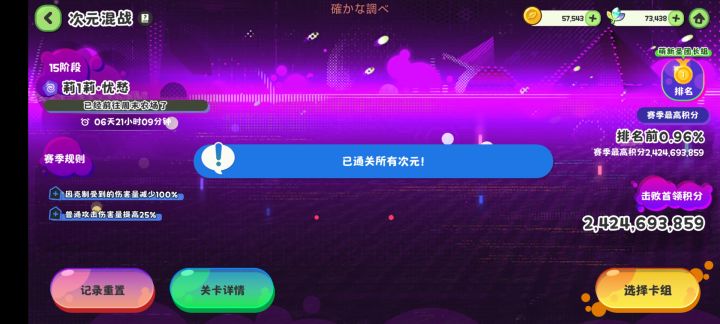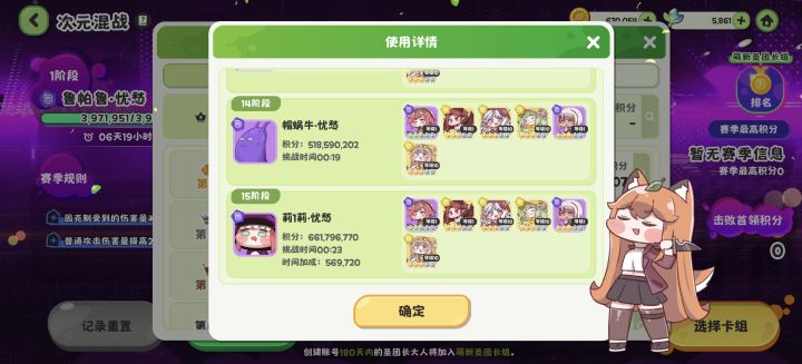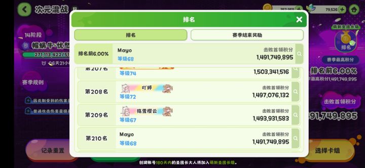 这次次元也是终于很容易的突破了12,莉1莉还是太原始人了。目前大概3500人打,210名排名6%,前排真是太卷了。先随便打一打,这次感觉好好打能见到15。13装备好了能一刀过,14两刀,15碰一下。还是太菜了