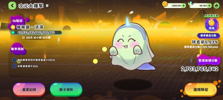 可惜开服两个月时不知道金蜡笔能加成全部使徒(我以前理解成只有队伍里的才会生效)现在才点了第一层的血量攻击,防御点了一半光队、冰队、暗队全用掉了也没打过这个幽灵开局就闪到你队伍中秒掉好几个使徒后面我就主输出带指挥棒和磨刀石再带一件输出装,差那么些血早知就抽艾琳娜专武伤害应该就够了,最后暗队打时幽灵把锡安切掉了,就剩柯米和基迪恩,小黑龙苦打三亿伤害最终时间不足飞升周末农场