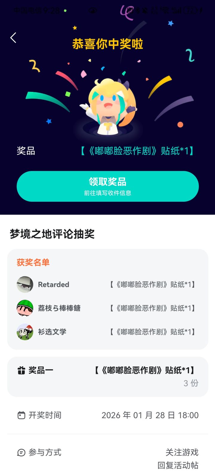 这个奖品贴纸啥时候才能送啊,我看说是一个月内发货,现在还没有动静