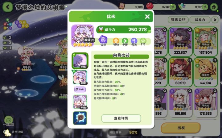 1、选词条必选:雨滴的回忆(全体攻击)、祝福的回忆(恢复HP)备选:当期up词条(保证有1或2个攻击词条)2、选角色必选:蜜蜂、莫莫、优米备选:雨伊、当期up角色或不被克制的角色3、局内词条选择优先选攻击类防止时间不够(雨滴、处决、普速、回SP等)其次选回复类(祝福)最后其他类(升年级等)记住一条:有攻击优先选攻击最后祝大家拿满奖励,个个上百万分
