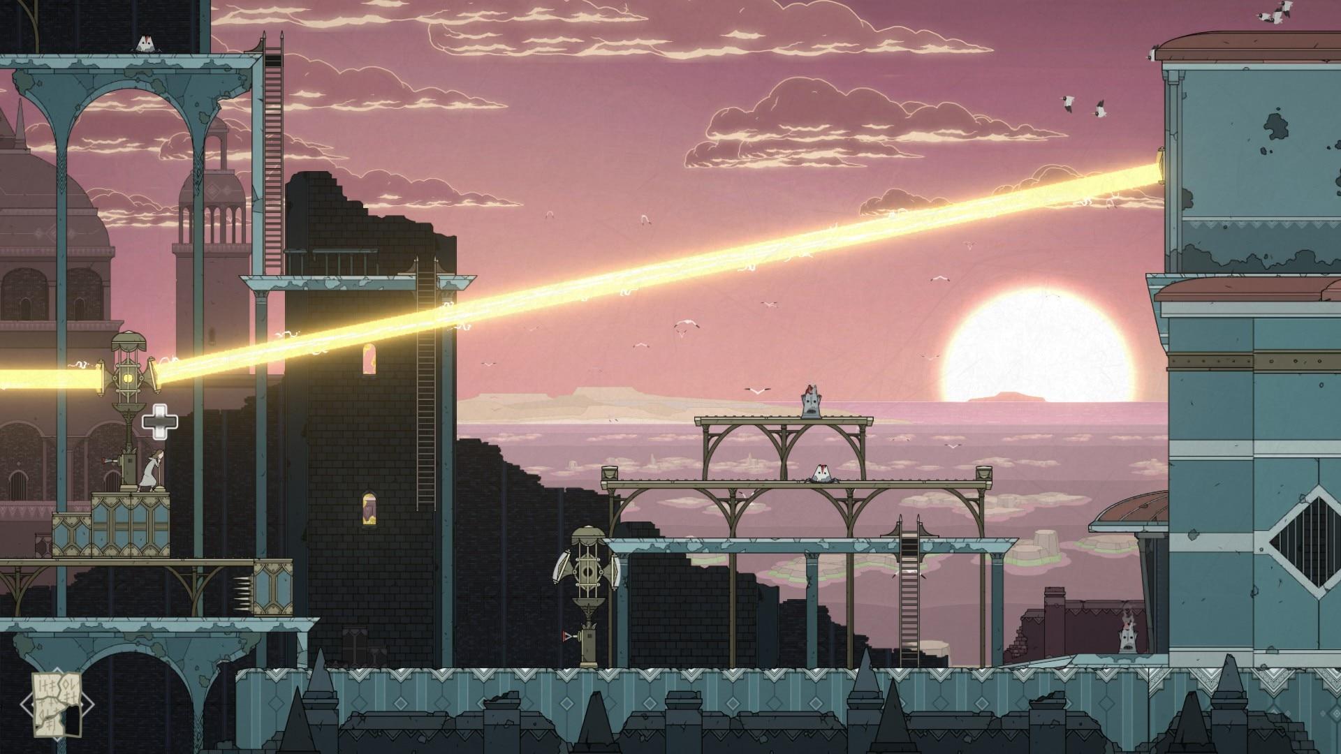 当游戏到达中后期玩家会遇到另一个可操控角色有点像兔儿的救主,但是并不是随意主角切换,而是需要到达特定的装置才可以切换,切换为救主时血量会随时间消失,攻击敌人、可破坏建筑物会恢复一定血量。加入主角切换之后后面的关卡设定也是丰富了起来,前面几章注重的是慢节奏探索解谜,而后面几章就是快节奏解谜的同时穿插着各种紧张刺激的追逐战、Boss战。特别是最后一章,被丧钟扣着屁股的蓝巨人会追逐你好几次,每次都有一些不同的陷阱来阻碍你前进。