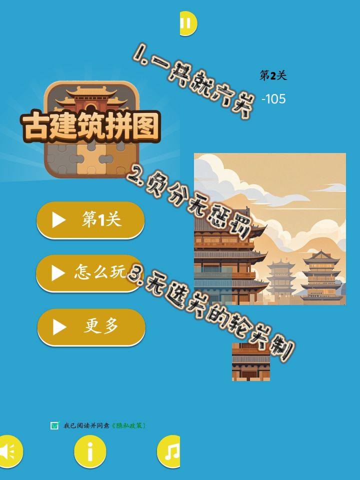 3.游戏名为《古建筑拼图》,其实给的图基本都是阁楼、城池这两,这个古建筑显得有些单调了吧。