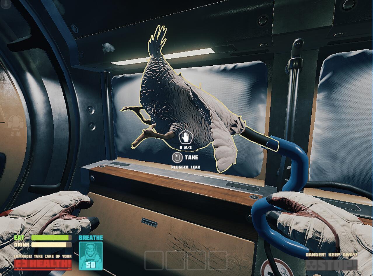 进入游戏后,玩家首先面对的第一个问题是堵住漏气的管子。然而我一开始啥都不懂,直接走上前去操作,结果操作失误居然练出腐鲲——啊呸,不好意思走错片场了,操作失误居然把一只鸡的头塞到了管子里!