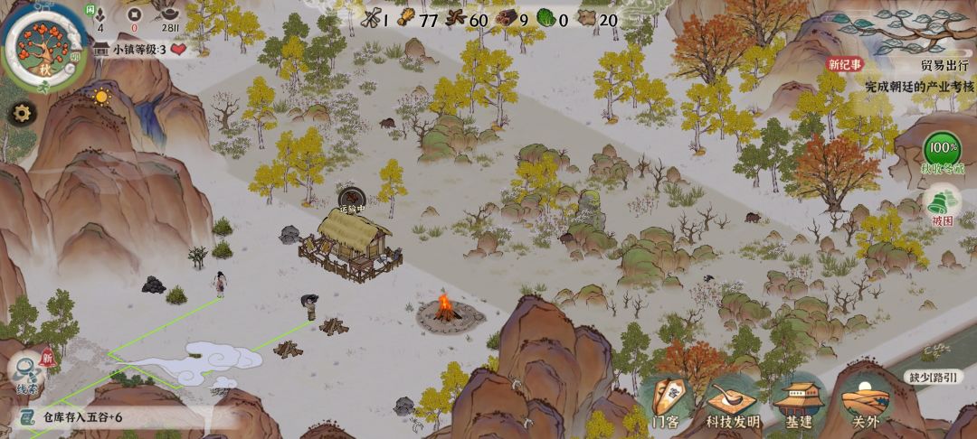 1.开局得不停点来点去,目的是收存粮食,喂食等,直到科技开出自动收取后才得以缓解。 2.开荒田地,开荒的条件不清楚,如图1,我按照新手教程里点燃三级篝火,仍然未能出现可以开荒的图标。 3.自由度不高,科技树连分支都没有,就一条路走到头,资源必须等到触发任务或者小镇升级后才在地图上刷新,给我的感觉是先按照神树走,做完任务,科技开到上限(等级限制建筑,建筑限制科技),凑生产力,以上做完后,小镇升级,不