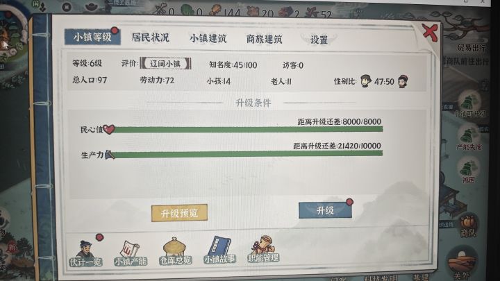 小镇等级一直在六级,升级不了,点了升级也没用,升级的条件已经全满了,咋整