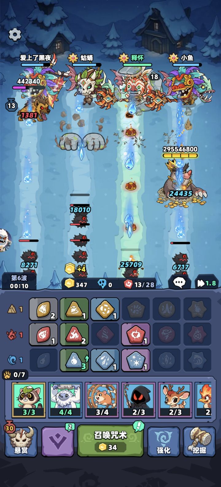 4人竖屏 守护部落 获取准备 宠物 藏品 提升战力 还有4联合 画风清晰 玩着给人一种解压 舒适感