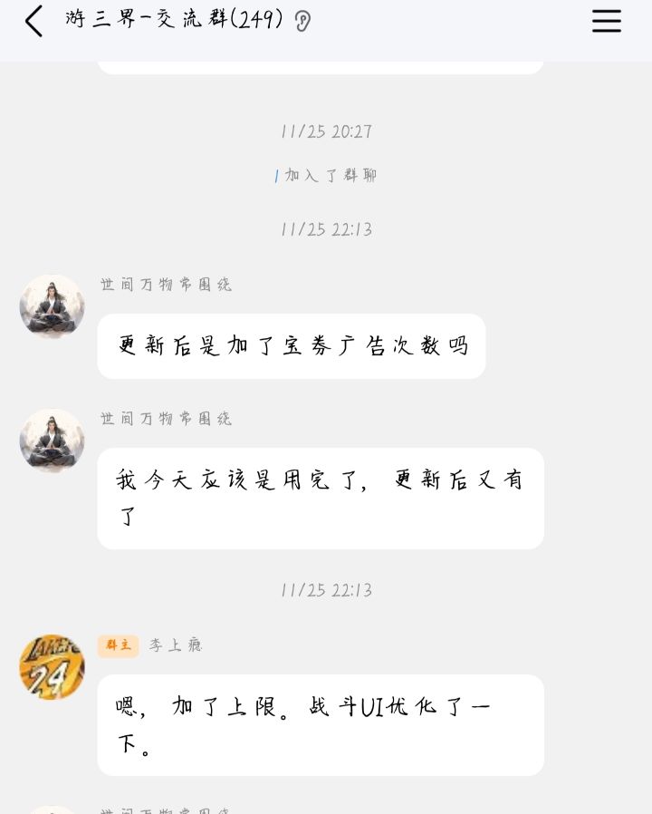 感谢道友支持,若遇见游戏问题可以进玩家交流群或是在论坛留言评价,我们会快速处理的