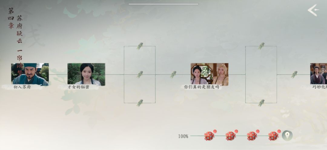 第四章 1才女的秘密 a是你 清儿- b是笑笑生 清儿+ 苏清儿花絮 c是第一美人 清儿+ 道具苏清儿的蝈蝈罐子,蝈蝈王黑蛋 陆明月花絮美图更新 2你们真的是朋友吗? a给苏清儿支招 b向陆明月直言 清儿+明月+ 明月美图更新 解锁 明月给苏清儿的赠礼 3巧妙化解 a我才是安阳城第一深情 清儿+(这丫头叫春丽的吗) b身份可疑,试探一番 清儿+ 成就:自己人 清儿美图更新 4矛盾爆发 a出头强怼