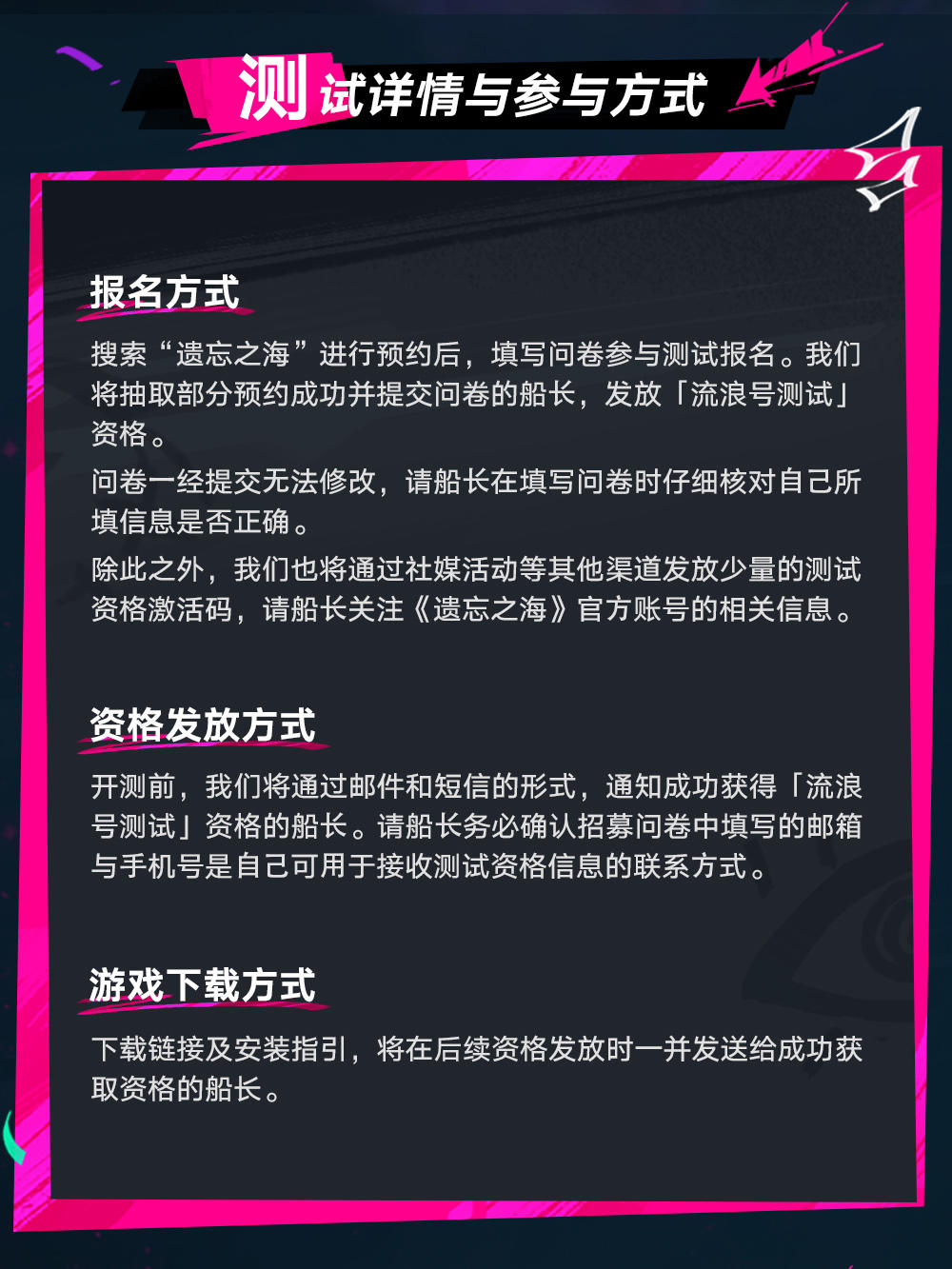 《遗忘之海》已开启二测「流浪号测试」的资格招募,在游戏官网或者官方合作平台填写报名问卷就可以报名啦! 测试将在2月5日开启,是包含PC端以及极少量的移动端名额的小规模技术删档测试 #今天游戏圈发生了啥 #吃瓜爆料 #新游爆料 #新游资讯 #游戏圈新闻速报 #游戏爆料 #资讯爆料 #遗忘之海