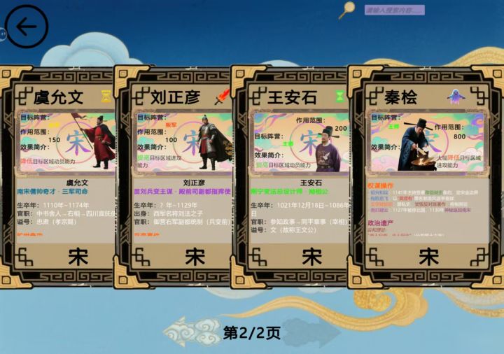 我发现这个有一个Bug ,就是如果一个关卡他太难了,或者你刚来到这个新关卡,你可以直接退出然后再重来(重新开一个),就可以直接跳到下一关,有时候这个都不要我自己弄直接给我跳到下一关了,修正这个bug吧!还有关卡,只能显示出前10关,我推荐可以弄一章一章弄,就比如5~20关可以为第一张,就叫收复失地,下一章就叫北划金朝…如果全部章节都弄完了,嗯可以弄别的剧本,比如大唐大明啥的,从总体来说,我是比较喜欢的,这种风格我喜欢,比大周好多了,所以我可以给5颗星