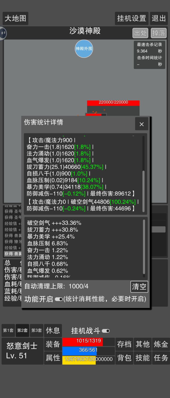 这个统计不知道准不准,打boss自损居然就几百伤害,法力和气血看着也不高