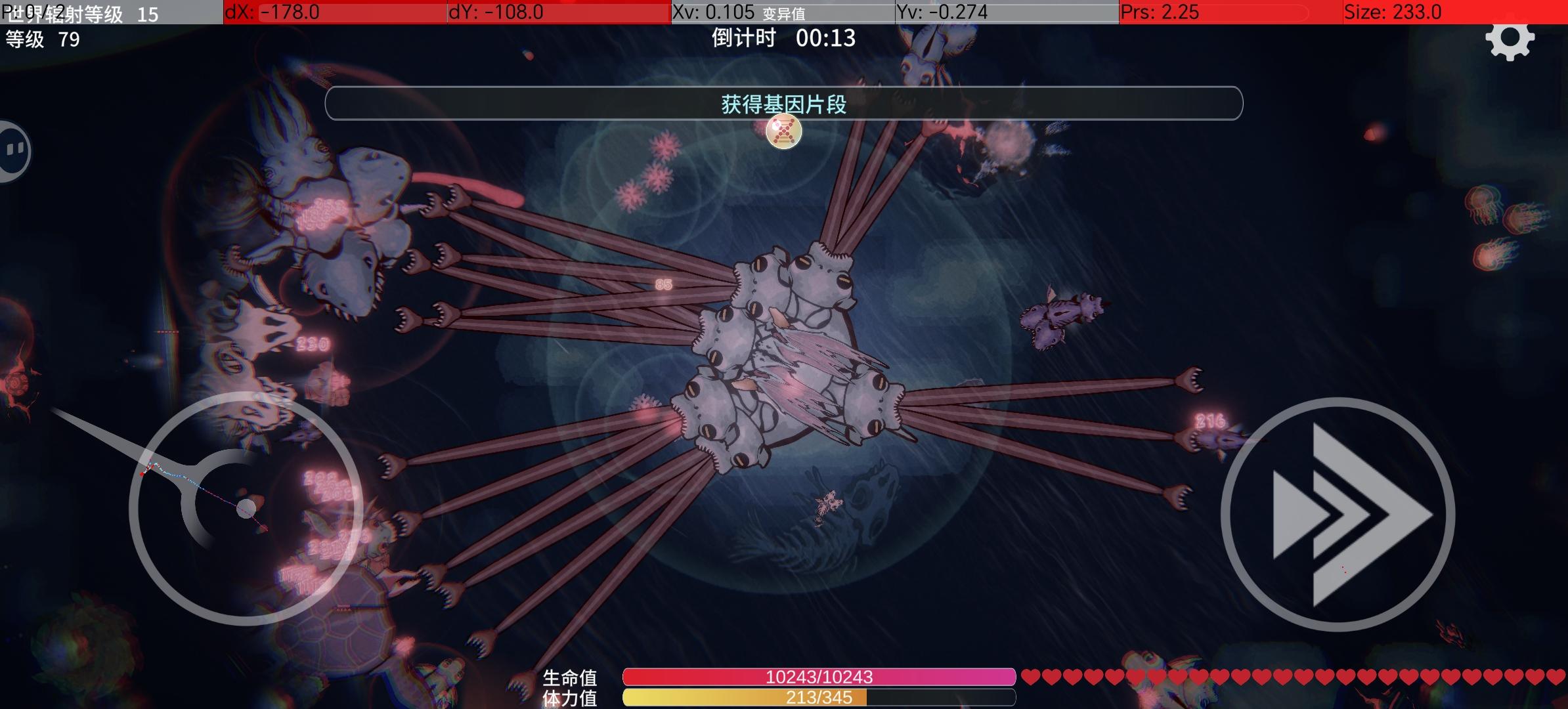 新手首先要最快速度解锁灾变模式,赌注压满,核心部位只有2个,追踪关节(会自动调整方向的)和刺击 前期配上个吃东西范围的,血量,回复,不需要,要攻击,(我的攻击是基因点上来了已经)攻击足够的时候,加点速度,提高效率,速度上来点两次血量就够了, 技能点的顺序个人建议先开关节,前期拿加伤害的也加不了多少,还不如堆两次技能拿后期的伤害,前期这是我的玩法,我用这个鱼是因为这个速度快,一开始建议保留一下自己的