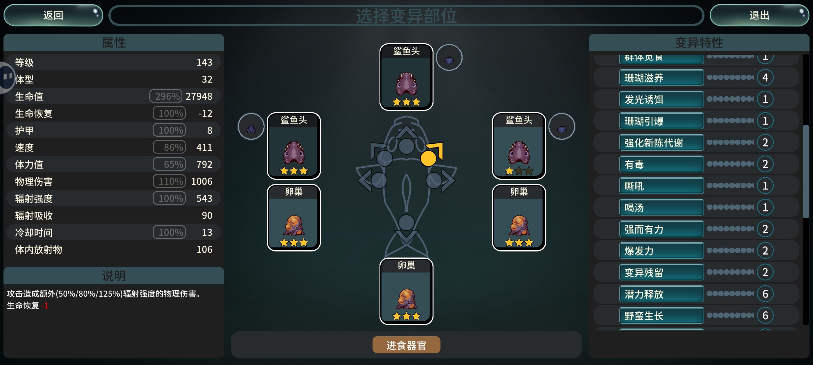 这个头是最优的部件,积射程,穿透,输岀,进食,刷基因于一体,成型最快,瞄准二级就可以尝试蹭boss了