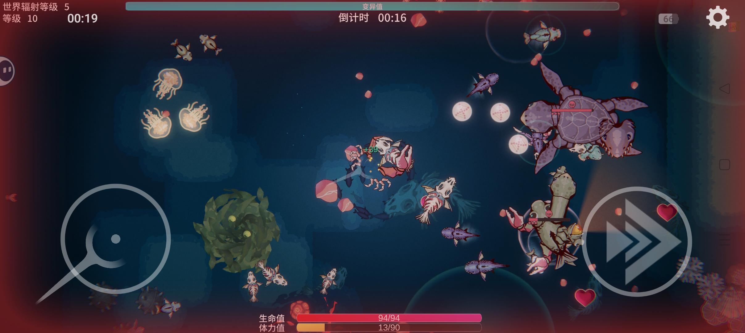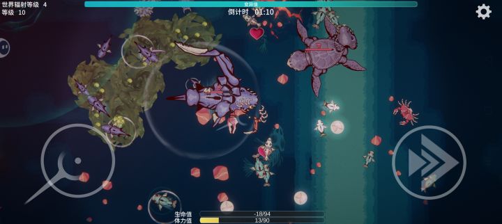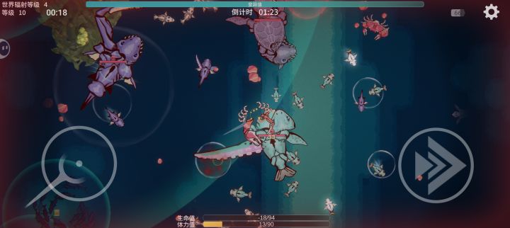 第二关打了两把都死了……菜的抠脚于是放弃探索后面的内容,重开了一把第一局,然后就打了快四个小时…?这东西没等级上限的吗?我手机卡成PPT了还能升级,不管来的啥妖魔鬼怪长得多抽象,在我面前撑20秒一条命就爆炸了。我自己更是不知道吃了多少颗心,估计70起底,毕竟打了三分之一多一点的时候就数来有21条命了。无脑选生命恢复,有命才有一切。开局本来是和一个触手螃蟹二分天下的,后来等我生命和生命恢复还有护