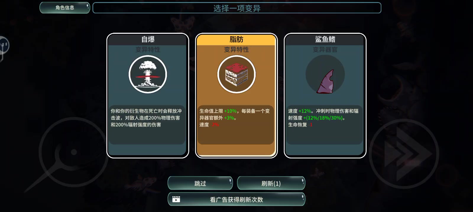 首先需要找寄生吸管,如果找不到就尽量叠生存(比如变异残留),前期的生存加属性就点血量。当然有野蛮生长,就点野蛮生长,翅膀也是。然后就是一个极速甩尾,这是为了把玩命冲刺点出来。吸管点出来后,就找力量汲取,力量汲取点到6其实就差不多了。形态反正按视频上面的整,要注意的是后面需要把鲨鱼鳍换成螃蟹夹。最后就是死命点甲壳冲击,甲壳保护,保护姿态,潜力释放, 接下来接下来就是要说点细节问题了。 增重是必须要点