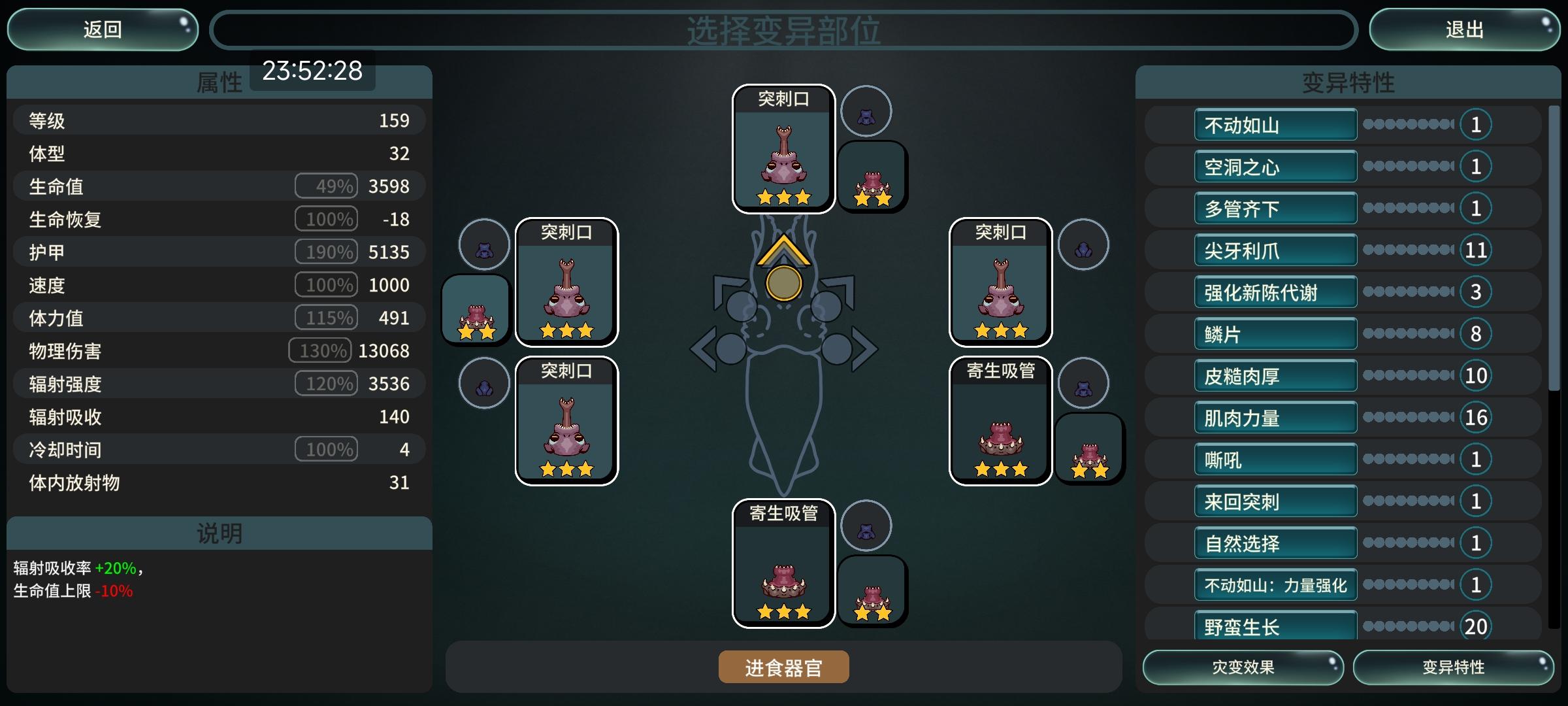 吸管跟卵巢 升级技能 破体而出 小鱼有自由觅食跟群体变异 负责收集经验 闪电角 引雷 震慑保证怪进入辐射范围罚站 吸管负责偷属性 配合引雷输出[表情_吃瓜]之后就不知道还能玩啥了