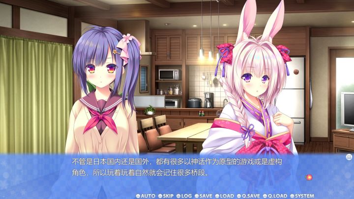 整个《雪境迷途遇仙踪》的故事中和风味会非常浓郁,什么雪兔、妖狐、付丧神、天狗之类的日本传统妖怪成为了剧情的主要推动者,嗯当然您懂的她们并不会是以妖怪本体形态出现而是具有美丽女性外表的人形态。事实上本作中登场人物差不多99%都是女性,除了一闪而过的巧斗老爸和不知怎么回事变成了柴犬的须佐之男外。随着剧情深入,玩家会接触到类似于神明因为信仰缺失而被遗忘之类的小冲突,不过总体来说还是相对波澜不惊以甜蜜为主旋律,毕竟咱们的首要目标还是和四位女主角谈恋爱呀。