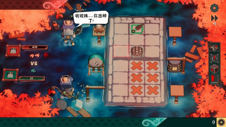 本作的卡牌系统叫做“招式”,一开始的招式是固定的,随着关卡的深入可通过“学习”解锁新的招式。游戏的招式会放在一个骰子上,每个面对应一个招式,每回合出一张或两张招式,新学的招式可以在“改骰换面”或者“骰子增面”里替换上去或者增添上去。