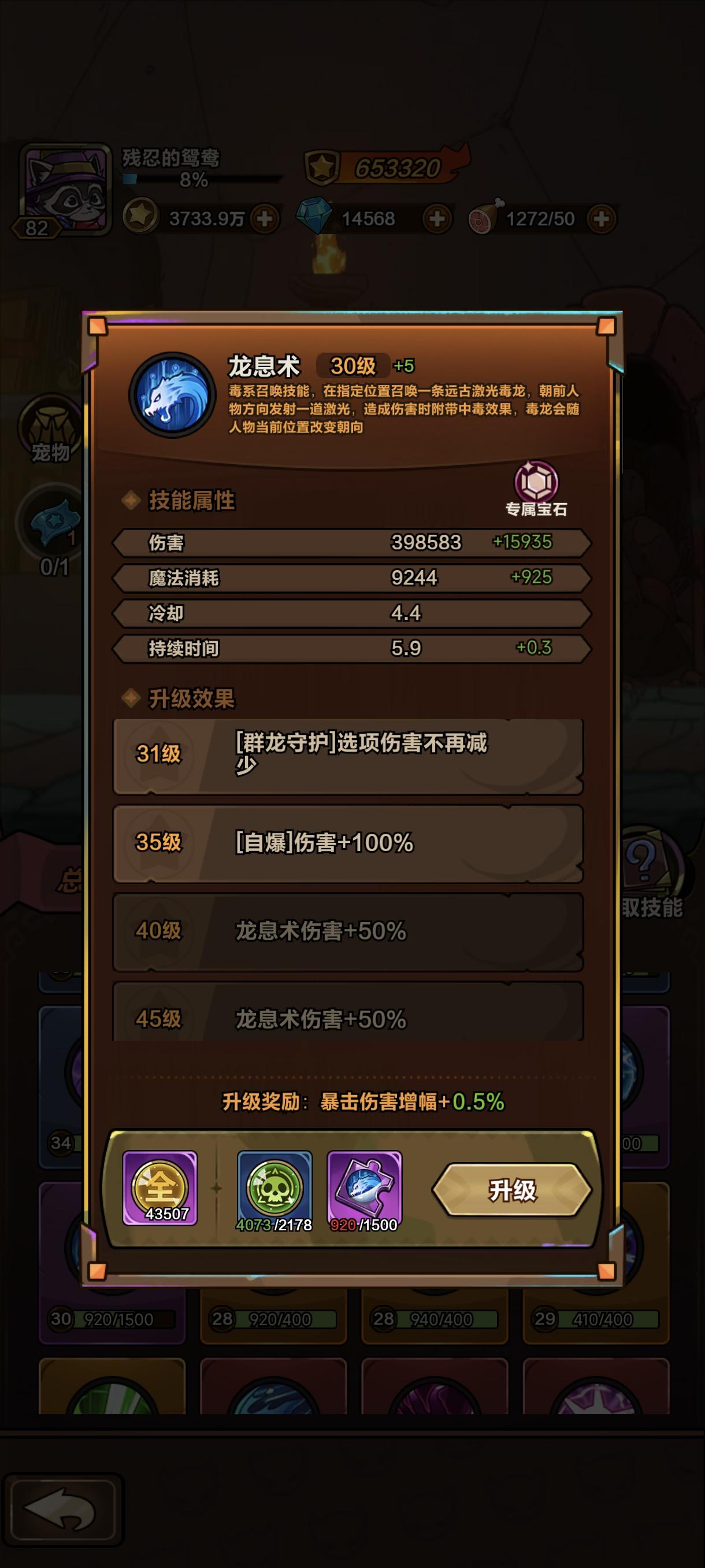 毒垃圾的一批,35毒龙的技能更是搞笑,基础伤害还低,对群不如领域一根,对单不及致命,就这我大部分宝石还是毒龙的,等攒够钻石转光暗